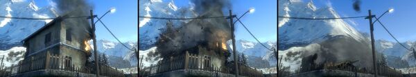 Some buildings don’t incorporate Destruction 2.0; for example: the aircraft hangars and green-coloured sleeping quarter buildings in No One Gets Left Behind.