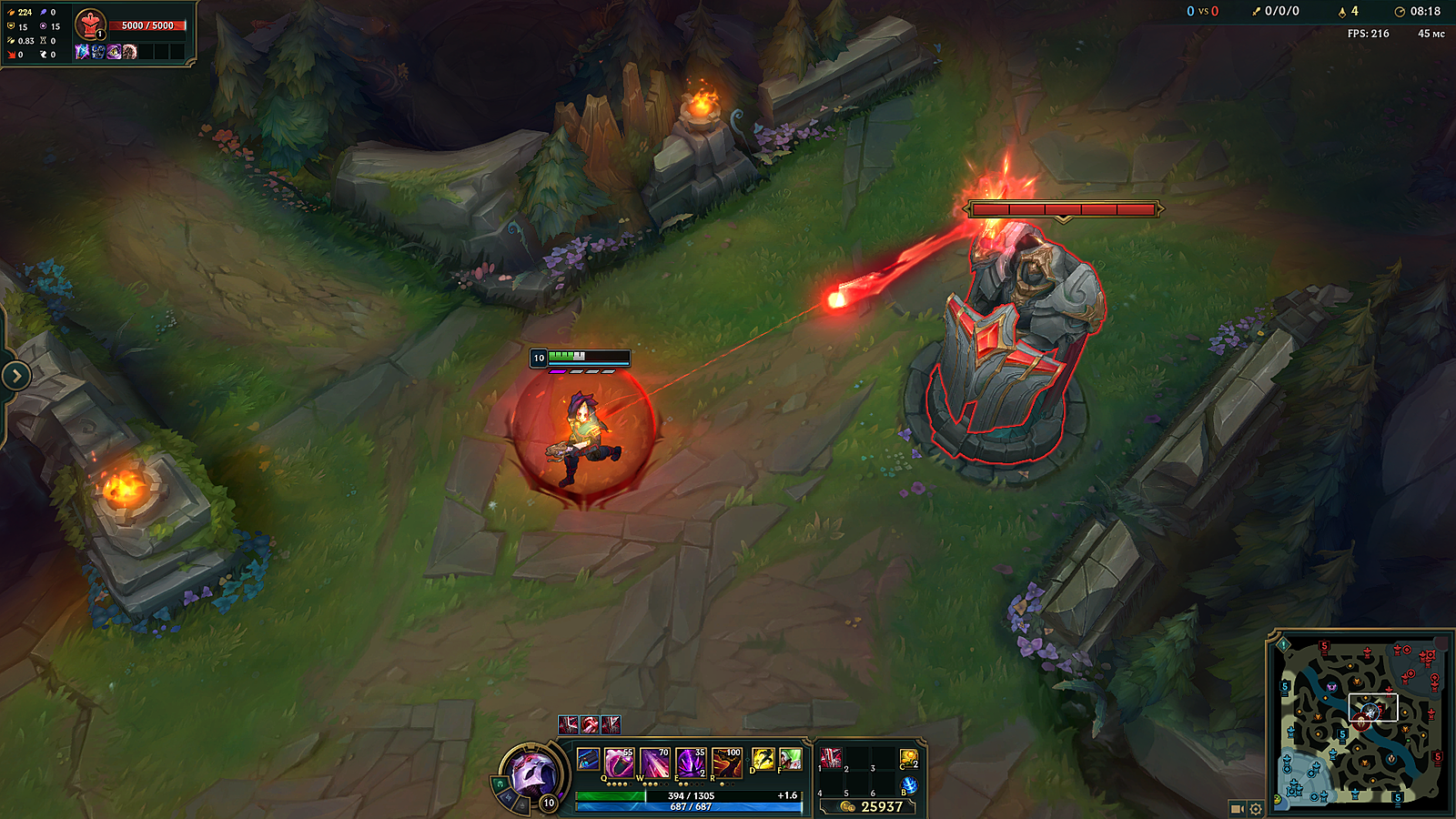 Кроме того, на боте стоят персонажи намного тоньше, чем на топе, поэтому урон от способностей Йорика будет более ощутим.